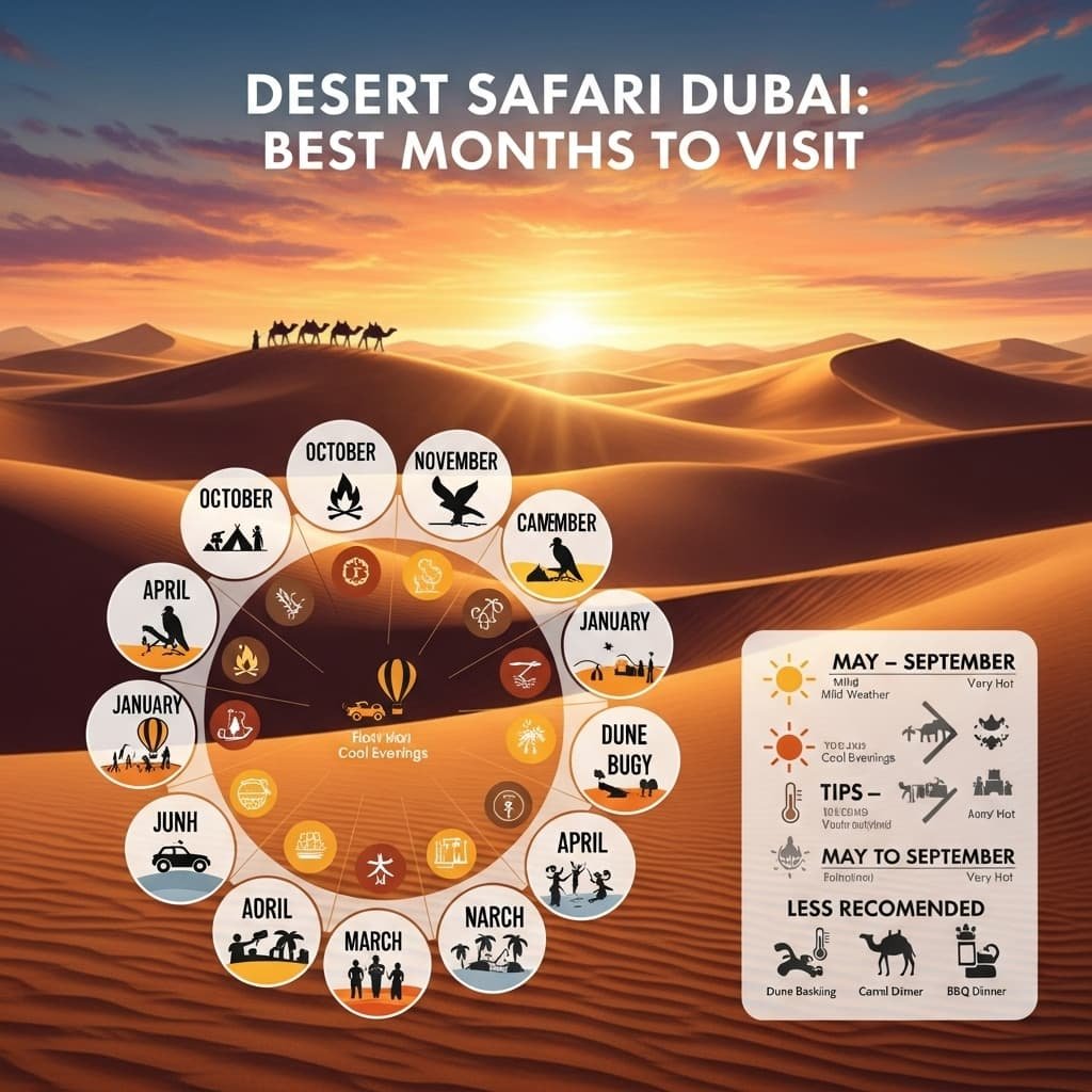 1. What are the absolute Best Months for Desert Safari Dubai? The absolute best months are from November to March. During this period, the weather is mild and pleasant, with daytime temperatures ranging from 20°C to 28°C. This allows for all outdoor activities like dune bashing, sandboarding, and camel riding to be enjoyed without the risk of heat exhaustion. The evenings are cool, making the BBQ dinner and stargazing extremely comfortable.