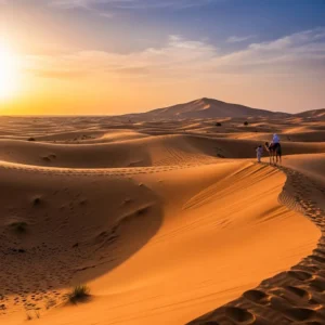 Camel trekking is the most traditional form of desert travel. It is a slow, quiet, and eco-friendly way to see the dunes. Camels are perfectly adapted to the environment and have a much lower impact than motorized vehicles.