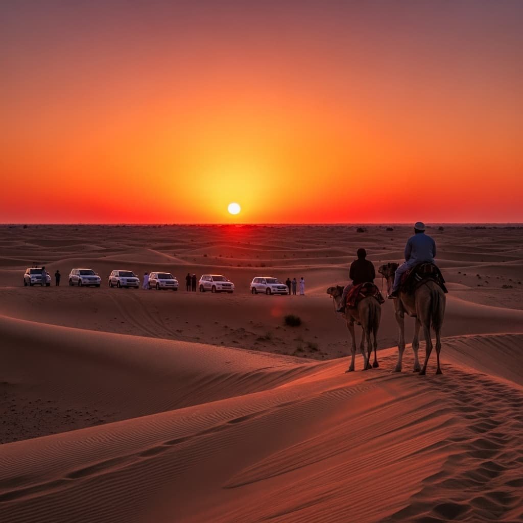 13. Are there crowds at the sunset spots? Popular spots like the Red Dunes can get busy. You will see other 4x4s and tourists. However, the desert is huge. You can usually walk a few minutes away from the main group to find a clean patch of sand without people in your frame. Premium reserves like the Dubai Desert Conservation Reserve restrict the number of cars, ensuring a crowd-free experience.